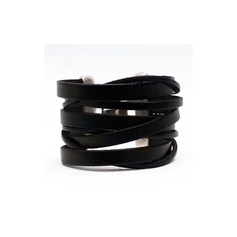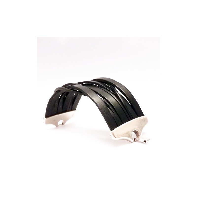 Bracelet en cuir véritable pleine fleur Unza-Unza ©. Cuir de vachette haut de gamme, fermoir plaqué argent, design mixte, qualité artisanale.